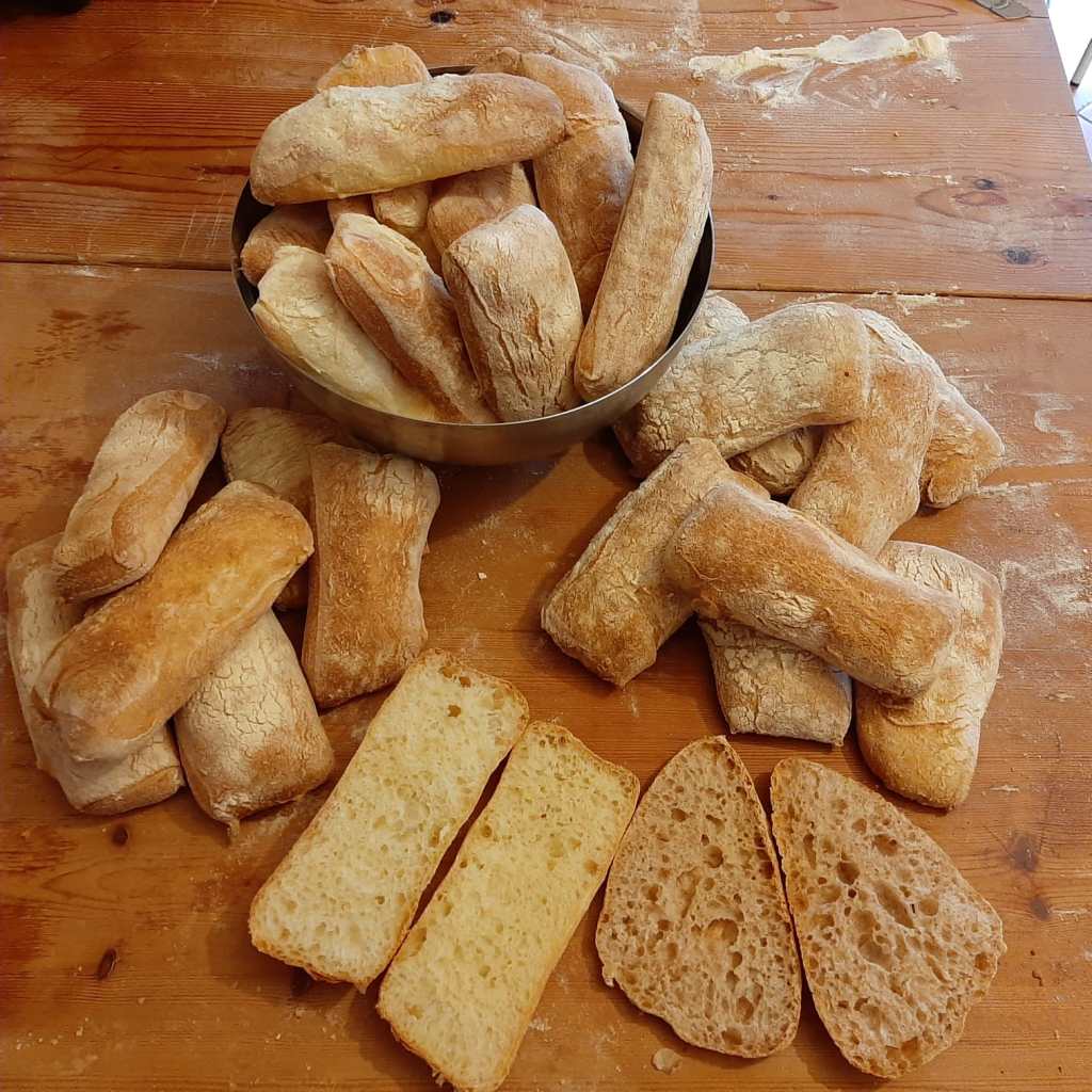 Lasciamo lievitare ancora un’oretta per poi rigirare nuovamente le ciabattine su pietra refrattaria, oppure in una teglia rivestita di carta forno.