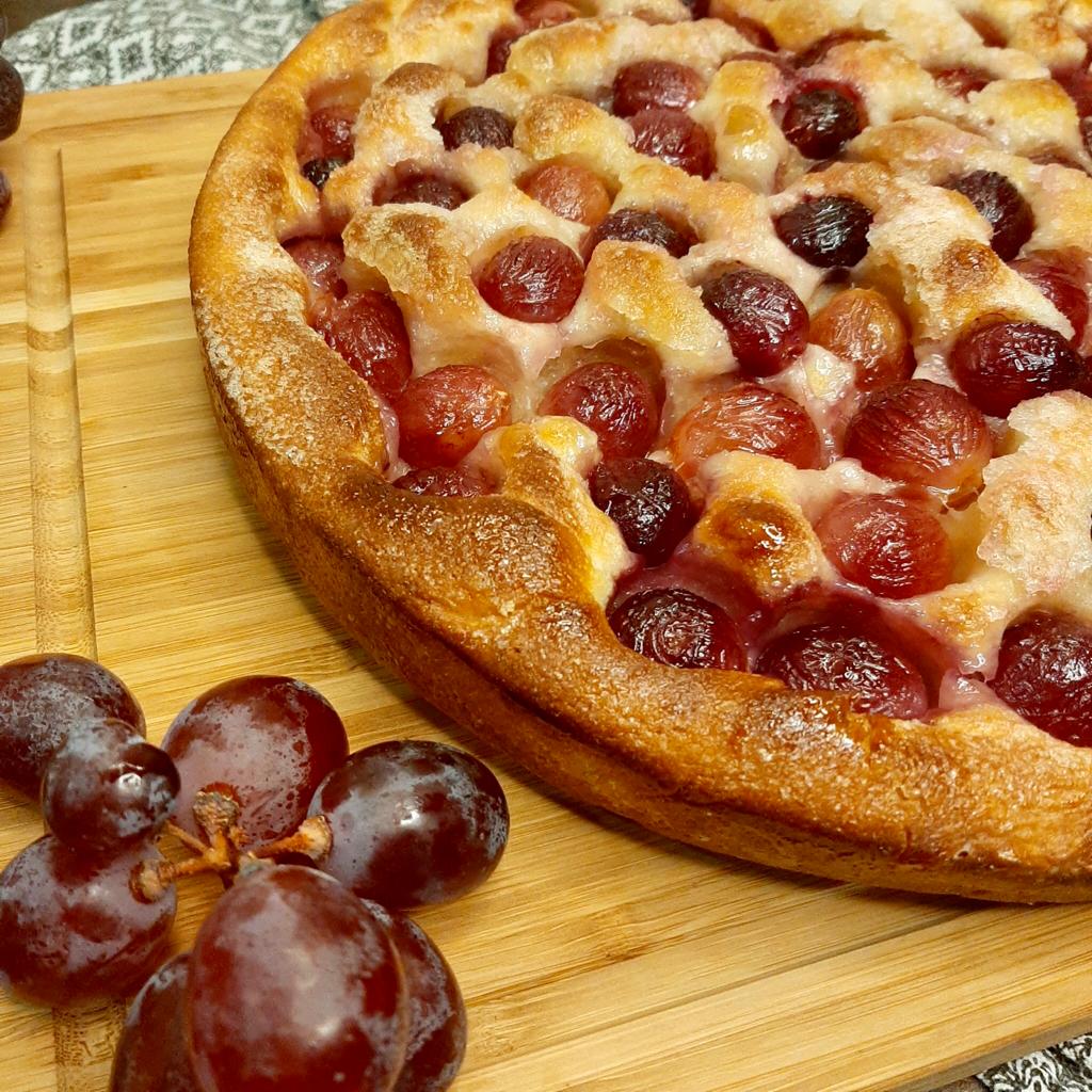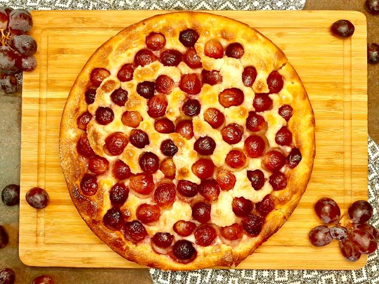 Ci sono diverse scuole di pensiero per questa focaccia, c’è chi la farcisce internamente e chi invece mette l’uva direttamente sopra l’impasto, io ho scelto la seconda opzione che in teoria spiegherebbe il nome del piatto “Schiacciata all’uva” perchè l’uva veniva schiacciata all’interno della pasta prima di cuoceerla.