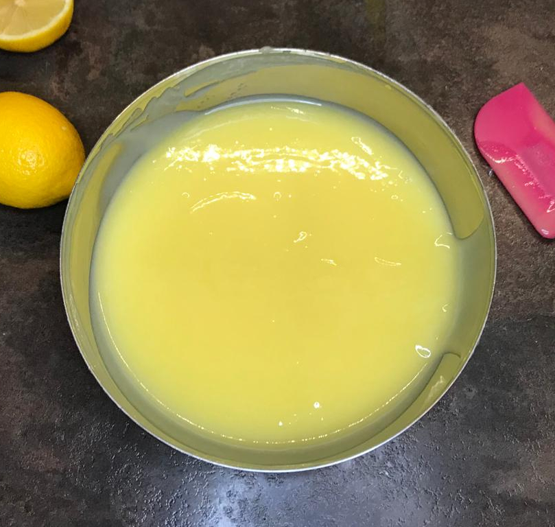 Versare in un pentolino il succo di limone e iniziare a scaldarlo, aggiungere le uova con lo zucchero e cuocere fino a 83°.