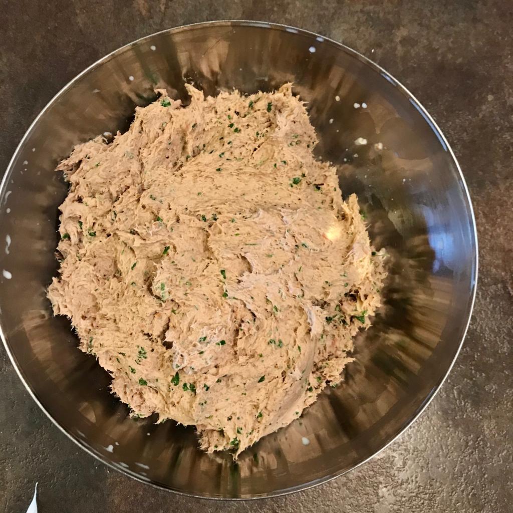 Ammollare il pane con del latte, strizzarlo e metterlo insieme a tutti gli ingredienti, ad eccezione del pan grattato, in un mixer e frullare tutto.