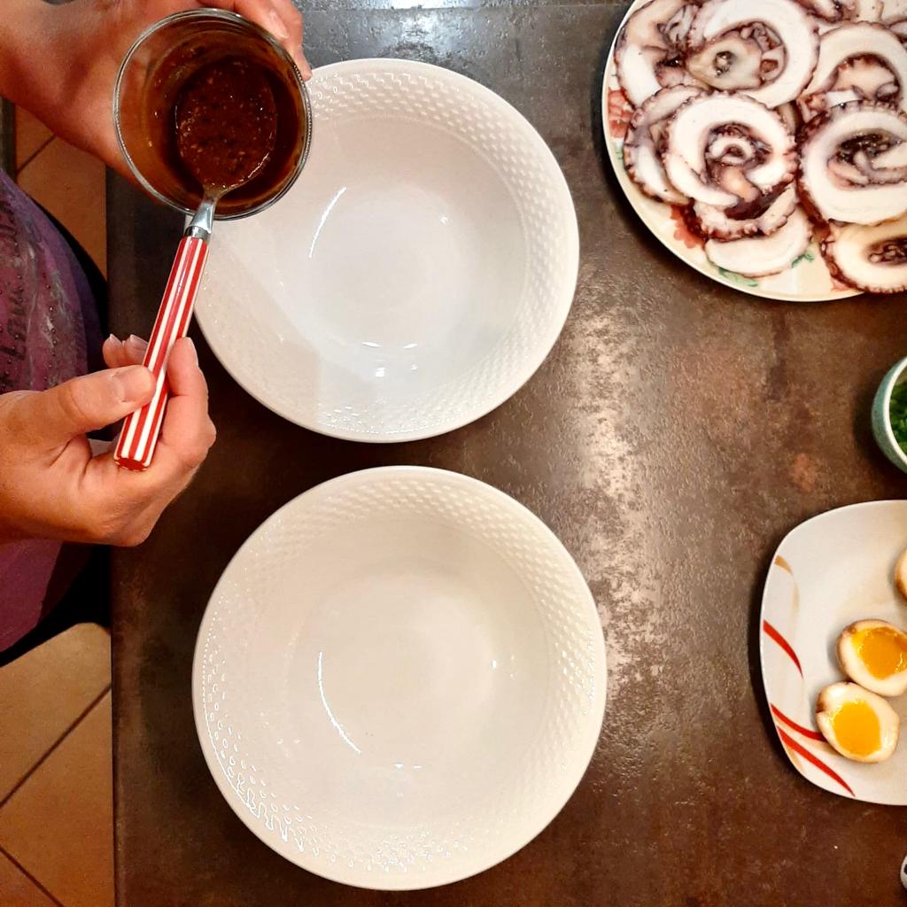La ricetta originale prevedeva il “Chashu”, un brasato di maiale ma io l’ho provato in altre due versioni, una con il polpo e una, quella che vi andrò a presentare, con le “Tsumire”, ovvero, polpette.