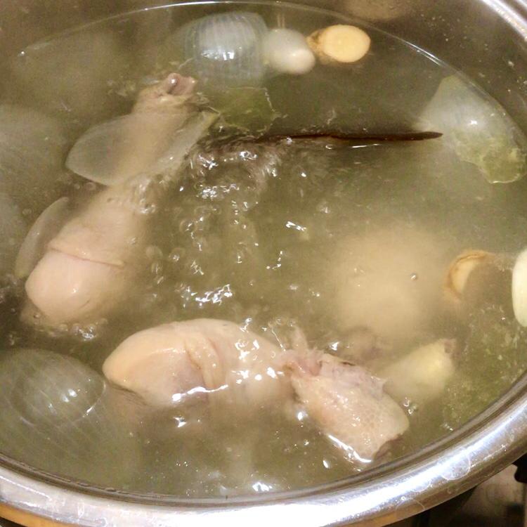 Come prima cosa prepariamo il brodo unendo tutti gli ingredienti in una pentola, portando a bollore e lasciando cuocere a fiamma bassa per ben 6/7 ore.