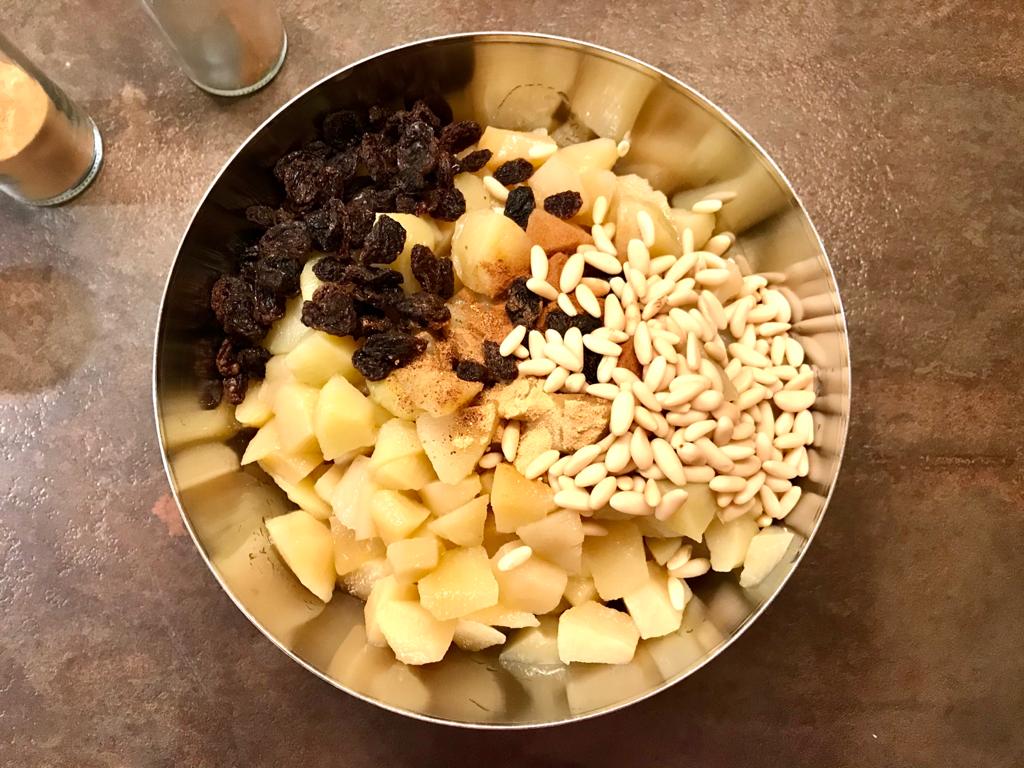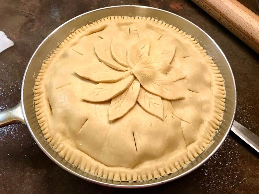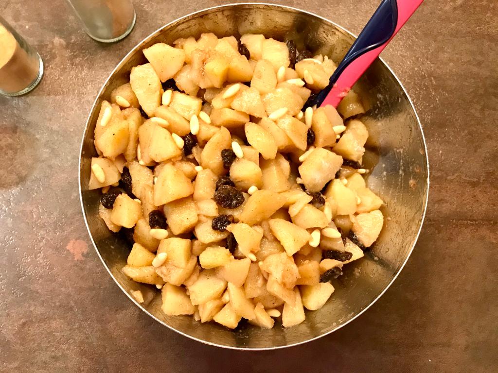 Versare il composto di mele all’interno e coprire con un altro strato di frolla.