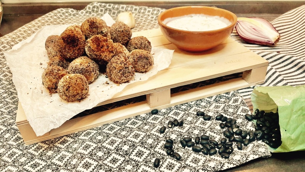 Scolare i fagioli e farli raffreddare, frullarli insieme a tutti gli altri ingredienti ad eccezione di 30 g di pane che vi servirà per panare le polpette.