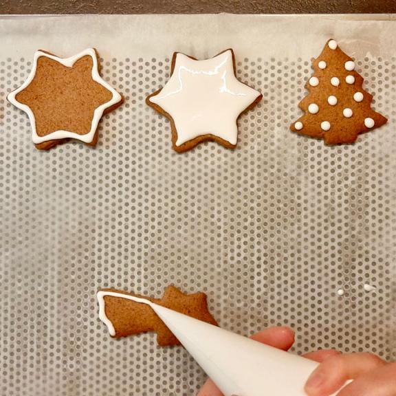 Sfornare i biscotti e farli raffreddare totalmente prima di decorarli con la glassa.