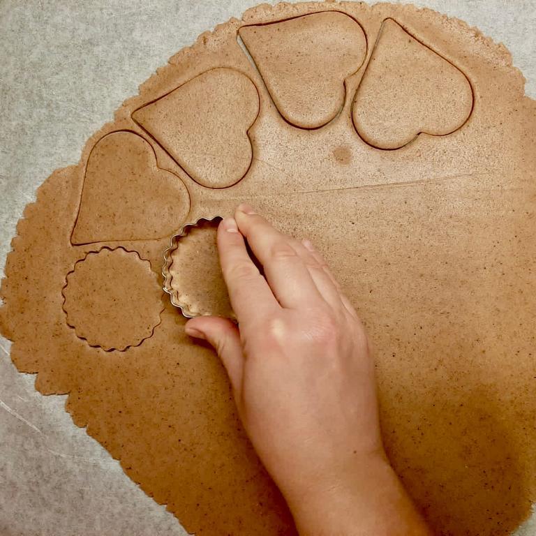 Riprendere l’impasto e stenderlo tra due fogli di carta forno fino a raggiungere lo spessore di 1 cm scarso.