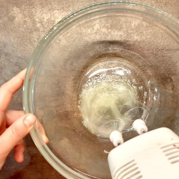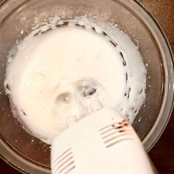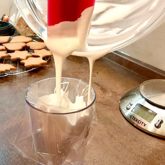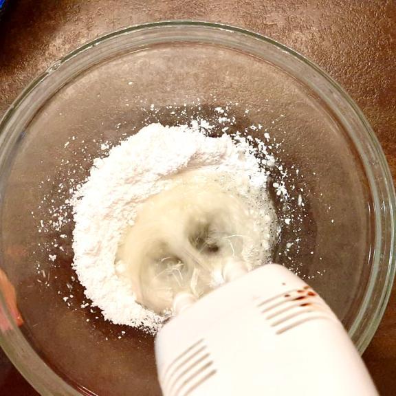 Mentre cuociono prepariamo la glassa sbattendo gli albumi con delle fruste elettriche, quando inizieranno a schiumare aggiungiamo lo zucchero a velo in 3 volte, fino ad ottenere un composto liscio ed omogeneo.