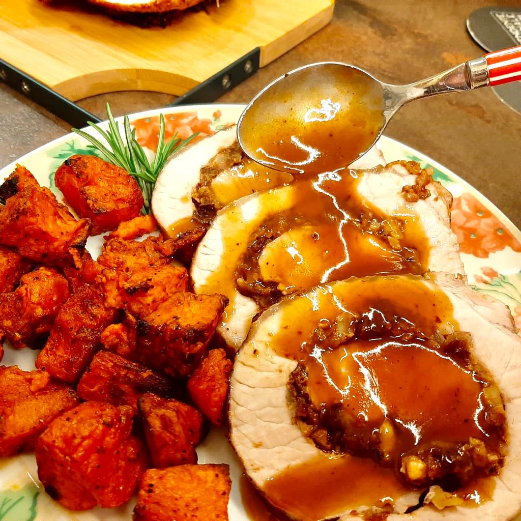 A questo punto non resta che affettare il nostro arrosto a fette sottili e versare un po’ di salsa sopra che renderà tutto più umido e goloso.