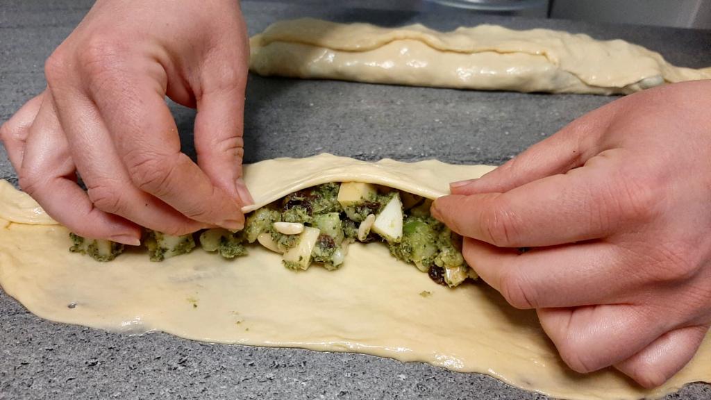 Chiudere i rettangoli dal lato lungo e girarli in modo che la chiusura sia sotto.