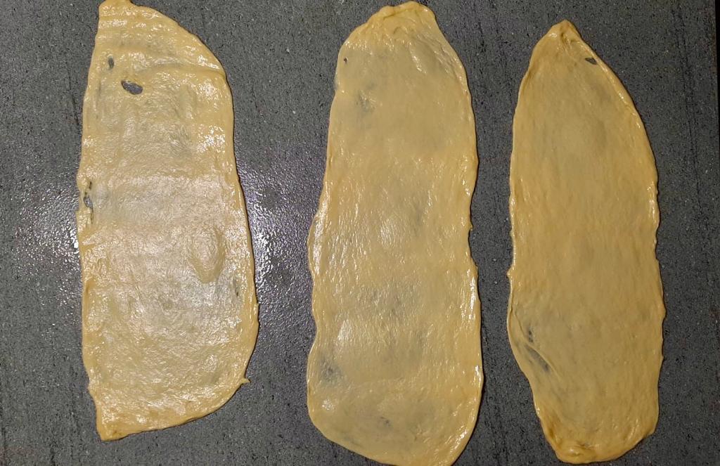 Una volta che l’impasto sarà raddoppiato dividerlo in tre pezzi uguali.