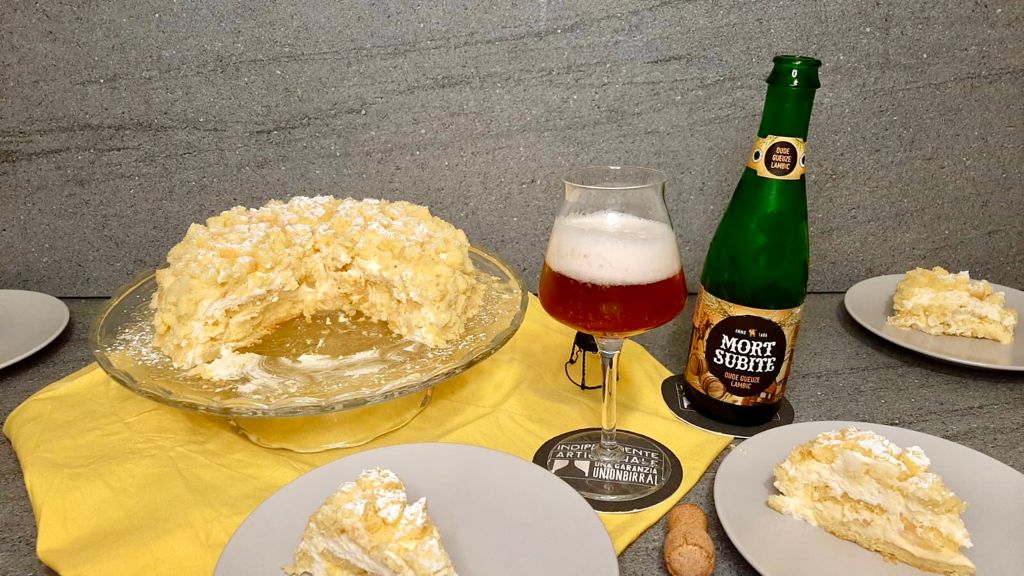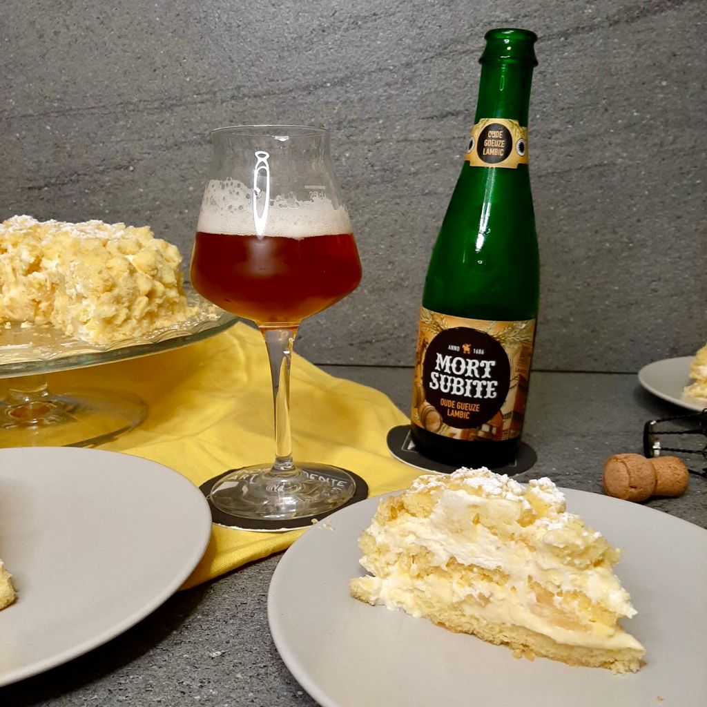 L’acidità di questa birra e la sua asprezza aiutano a ripulire la bocca dalla “grassezza” della crema senza però alterarne il gusto. Le note fruttate accompagnano il gusto della torta, rendendo questa birra un perfetto abbinamento.
