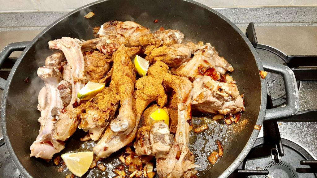 Aggiungere le spezie, il miele, gli spicchi di limone e il sale, amalgamare bene in modo che i sapori siano ben distribuiti.