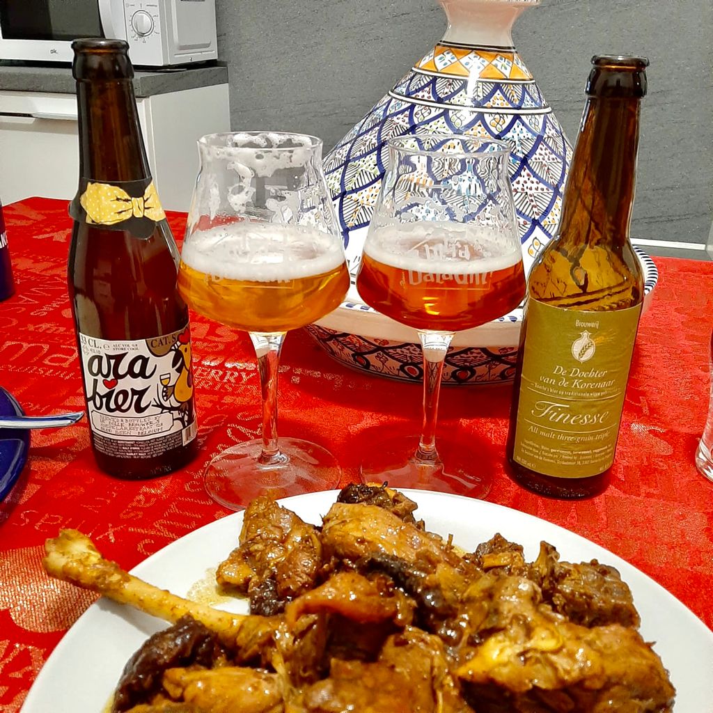 Se il finale amaro non rientra nei vostri gusti, suggeriamo di abbinarci la “Finesse” di De Dochter van de Korenaa, una Tripel multigrain (orzo, frumento e segale). Ha un bel colore arancione con una schiuma bianca e persistente. Aromi maltati di caramello e miele, il luppolo dona sentori di frutta e agrumi. In bocca vengono riproposti i sentori percepiti al naso. Una birra in linea con la pietanza, stessi sapori sia nel piatto che nel bicchiere.