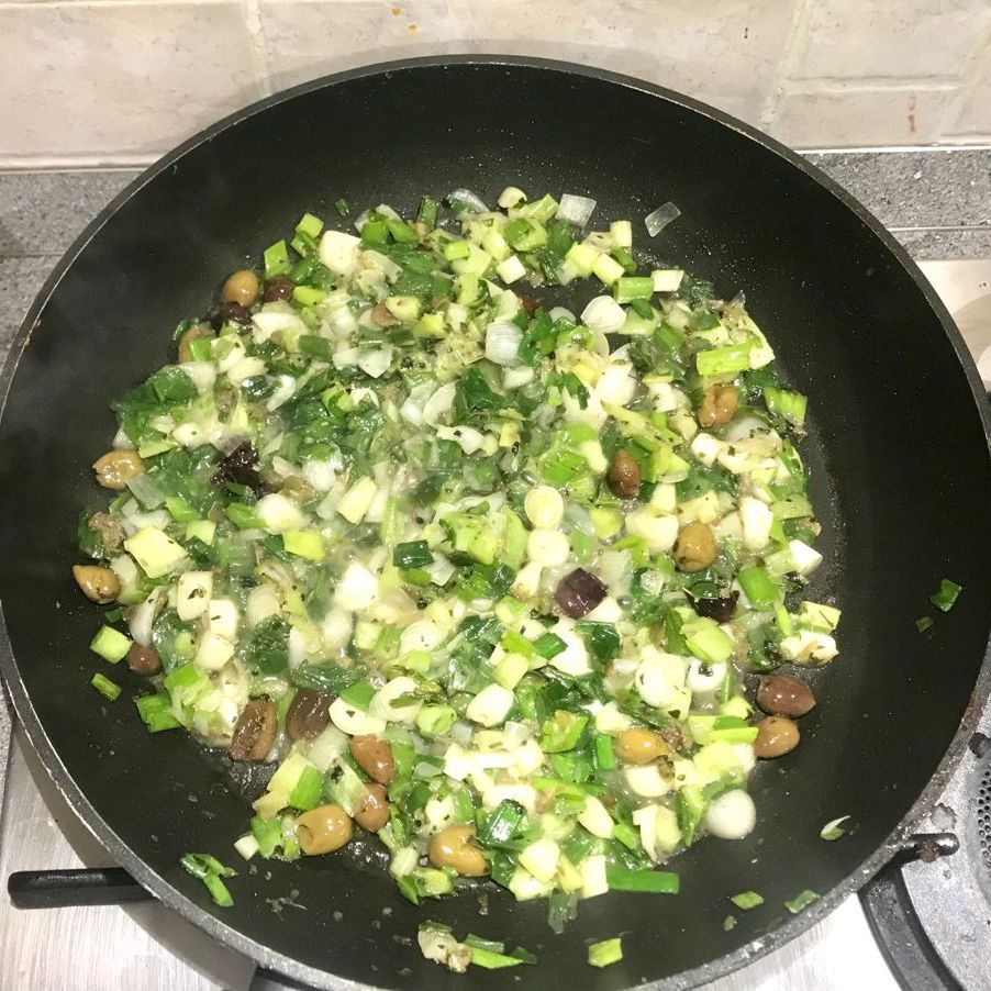 Aggiungere tutti gli altri ingredienti, far rosolare bene, coprire con il coperchio e lasciar stufare il tutto a fiamma medio bassa per circa 10/15 minuti. Finché gli sponsali risulteranno teneri. Lasciar raffreddare completamente.