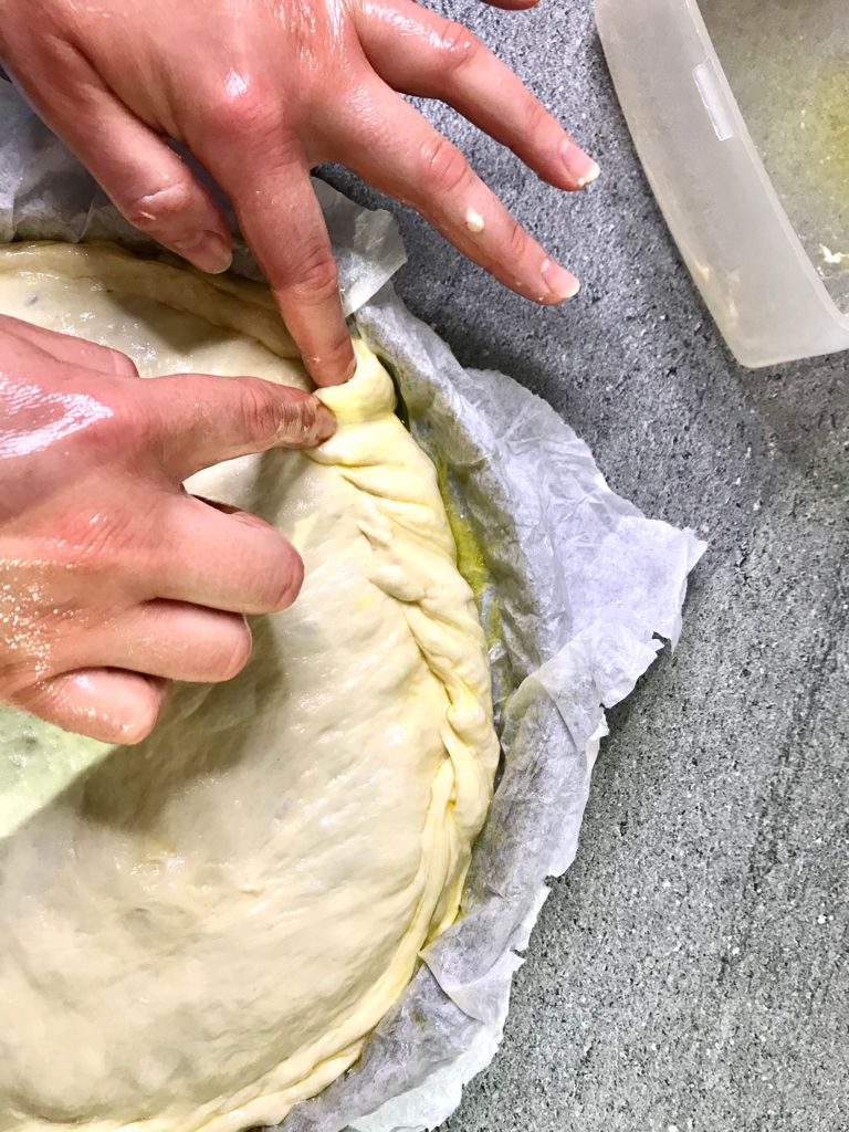 Chiudere bene i bordi pizzicando la pasta con le dita e rimettere nuovamente in forno spento con luce accesa a lievitare.