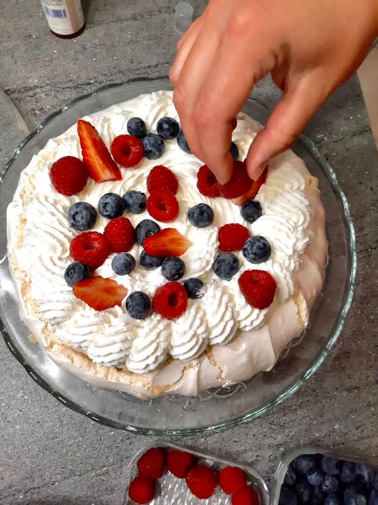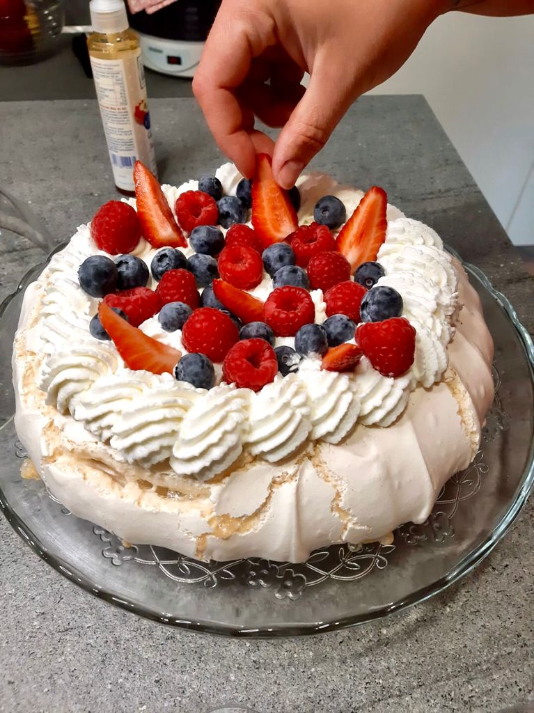 Dopo varie prove riuscì a trovare una quadra sulle dosi e i tempi di cottura e creò così la Torta Pavlova, meringa croccante fuori ma con il cuore morbido sormontata da panna montata e frutti rossi.
