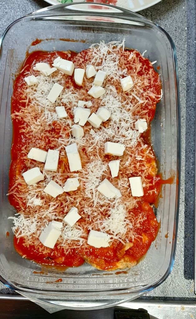 Passare in forno a 180 gradi per circa 20/30 minuti, fino a quando il formaggio sarà sciolto e si sarà creata la crosticina in superficie.