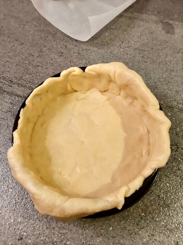 Stendere la pasta e rivestire uno stampo da 20 cm.