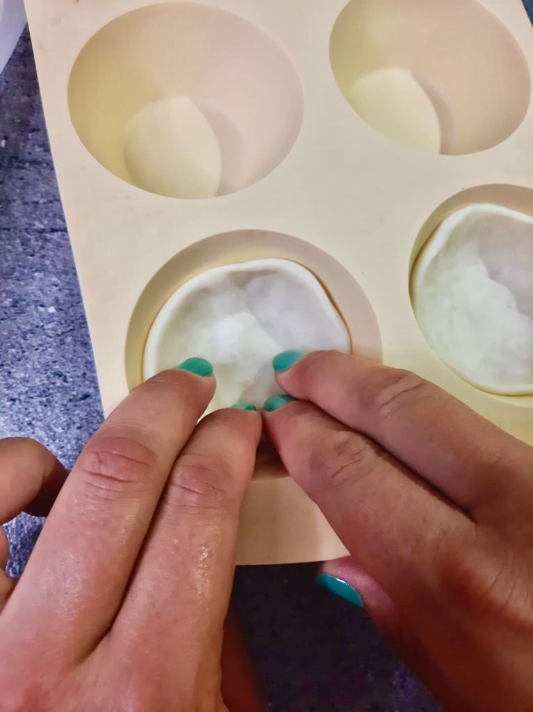 Schiacciare con le dita per dare la forma alla pasta.
