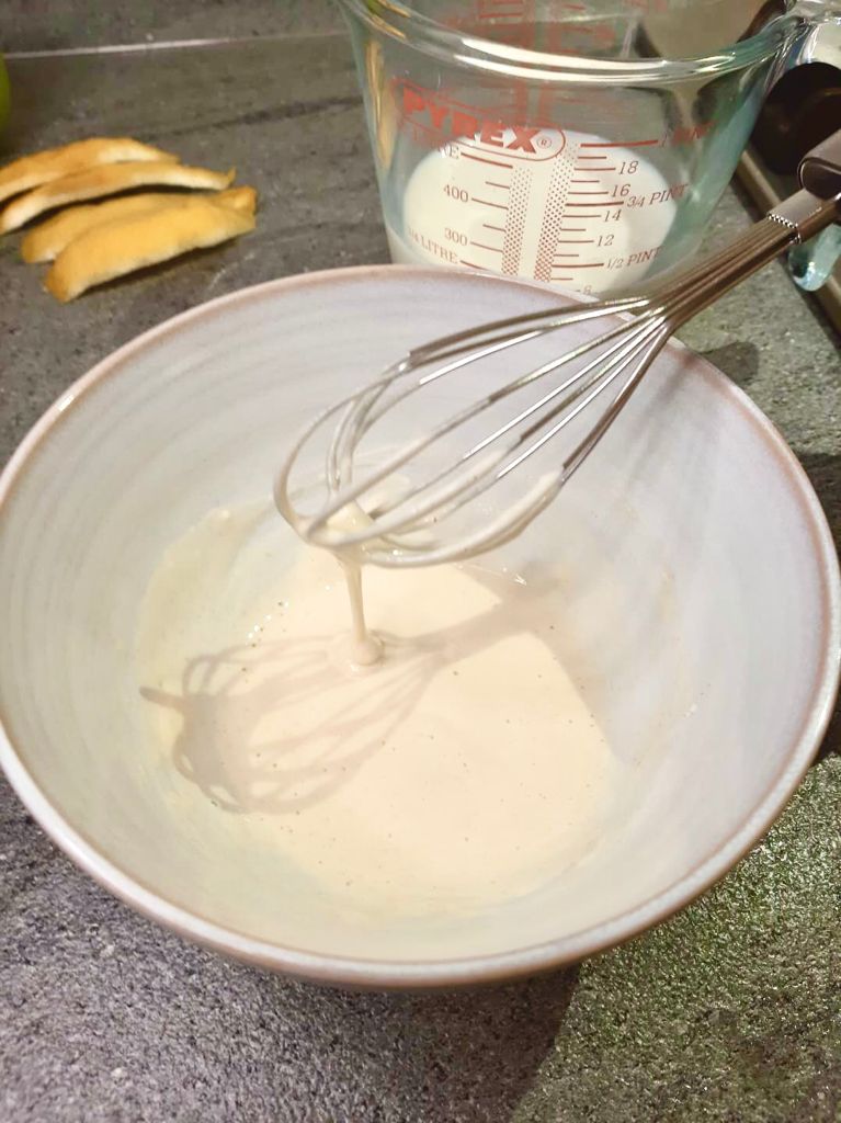 Aggiungere un po’ di latte alla farina e creare una pastella liscia.