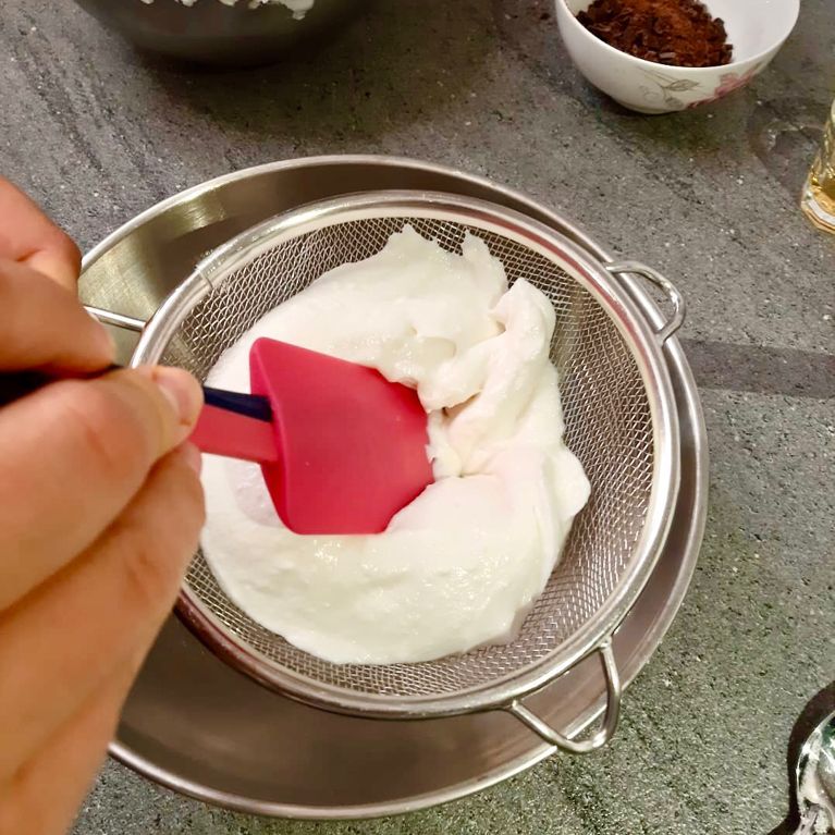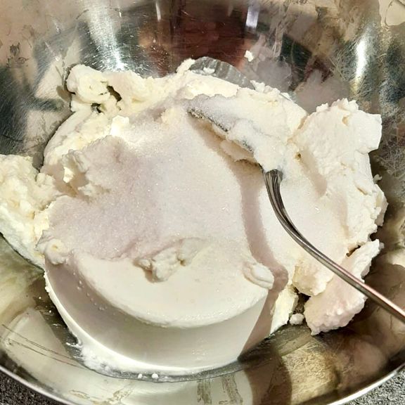 Unire il restante zucchero alla ricotta, amalgamare bene e setacciare il tutto due volte.