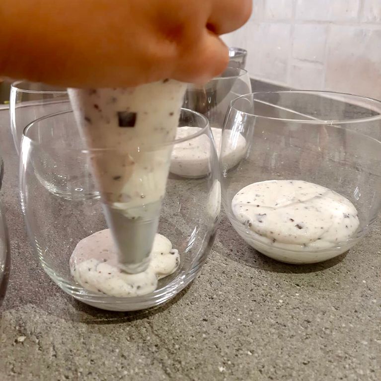 La buona carbonazione e la l’acidità donano una piacevole pulizia al palato, le note fruttate invece accompagnano il dolce con molta eleganza.