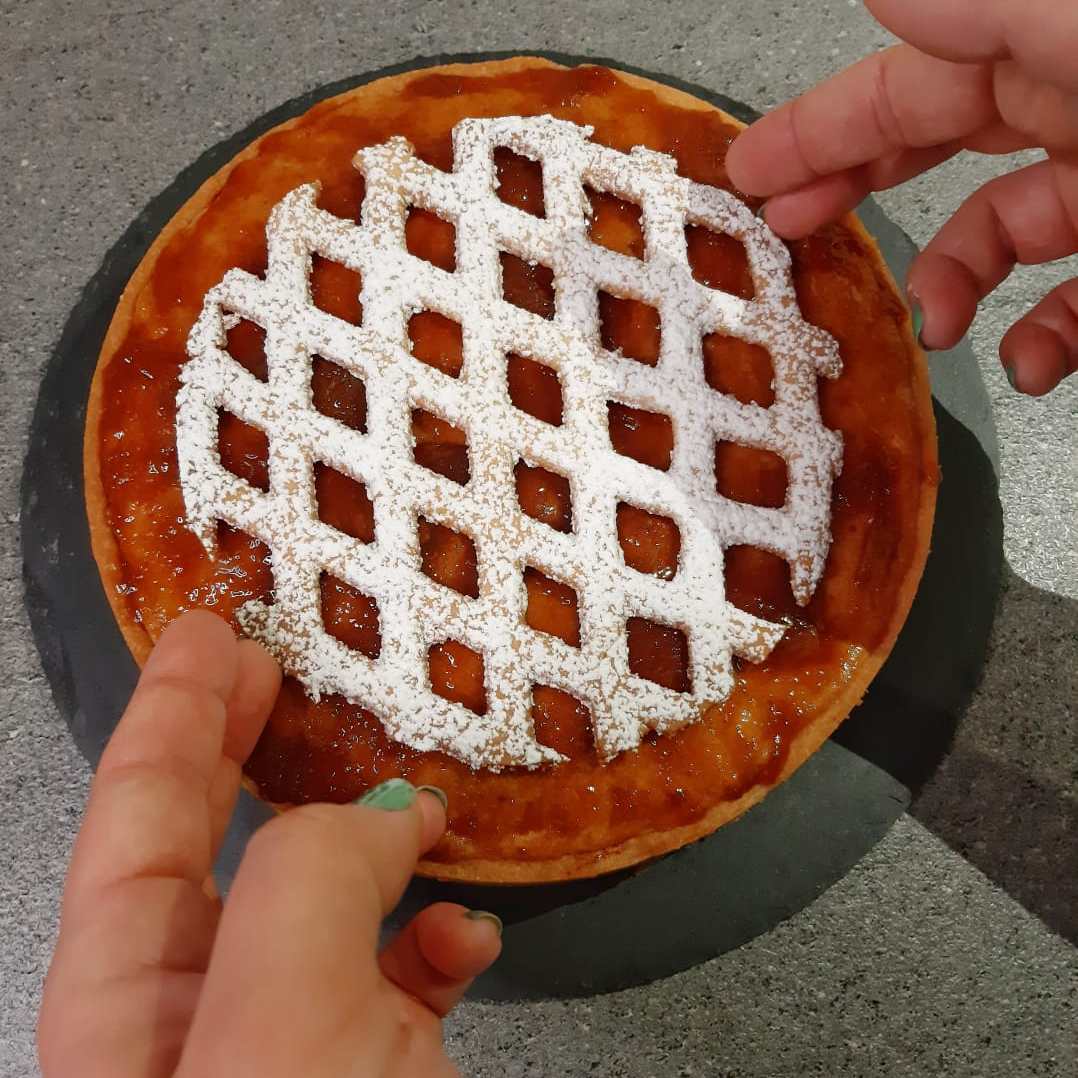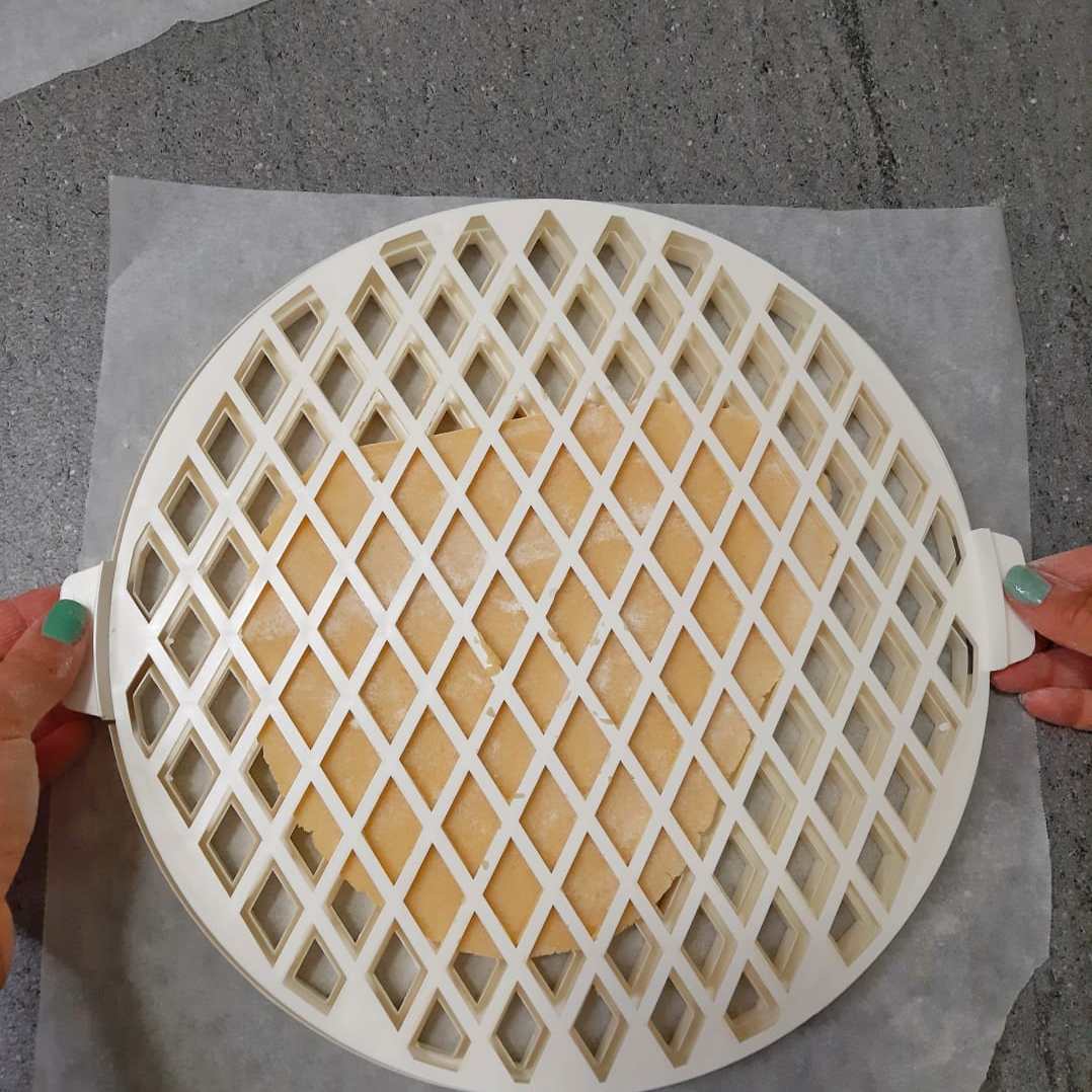 Con il resto della frolla create una griglia decorativa del diametro di 15/16 cm.