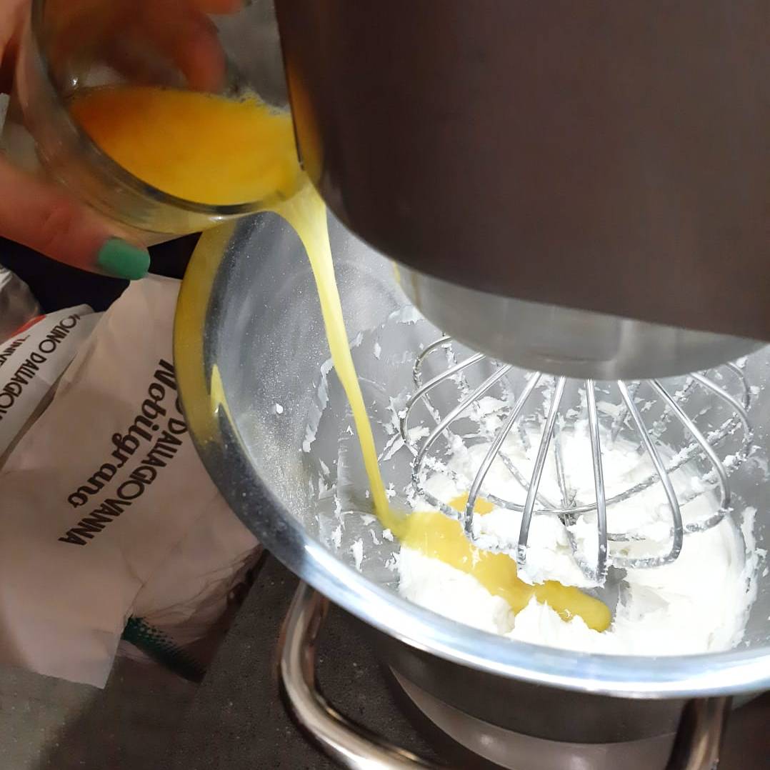 Montare il burro a temperatura ambiente con lo zucchero a velo, unire le uova poco per volta e una volta ottenuto un composto spumoso aggiungere le farine, continuare a montare per qualche minuto finchè il tutto risulterà omogeneo.