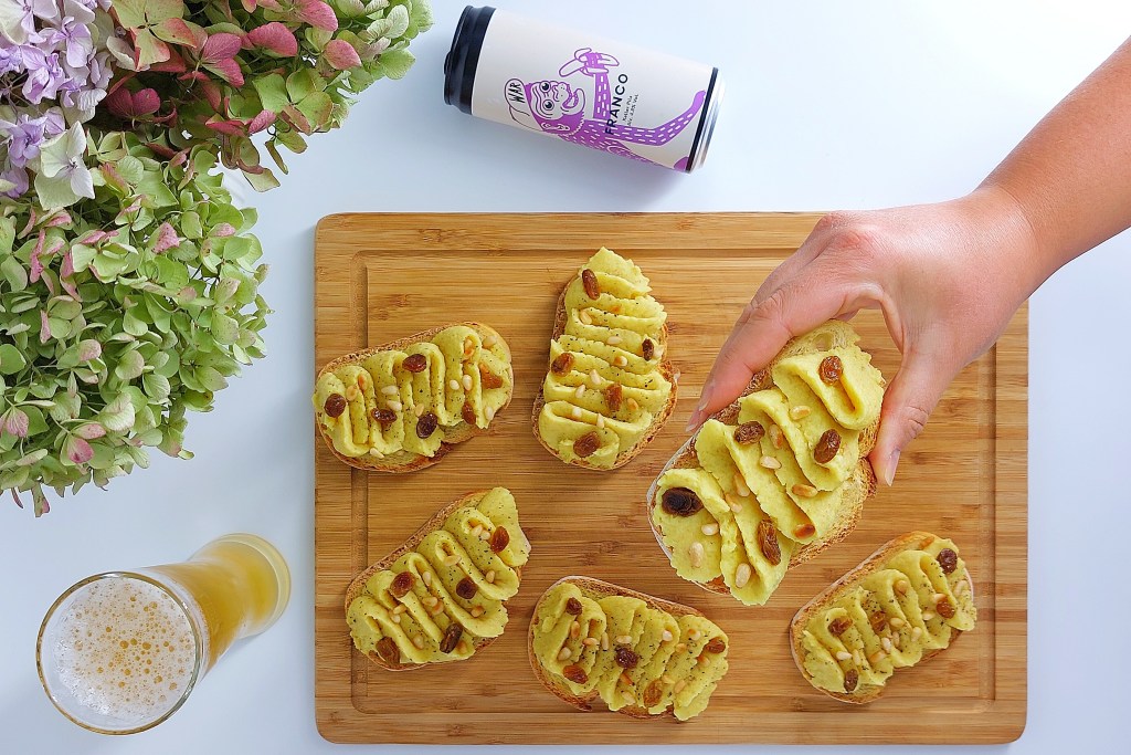 È una birra molto beverina, fresca e ruffiana. Ha un’ottima bevibilità e bilancia bene le note dolci di questa bruschetta al cavolfiore.