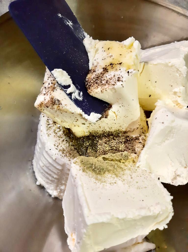 Per la farcia inserire in una ciotola tutti gli ingredienti e amalgamare bene, passare tutto al setaccio un paio di volte per rendere tutto più cremoso e versare sopra la base di taralli tenendo da parte almeno 1/3 .
