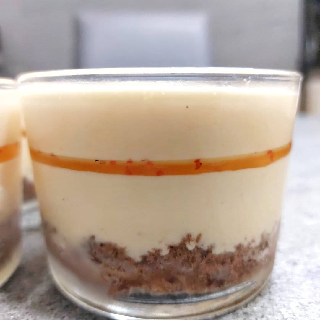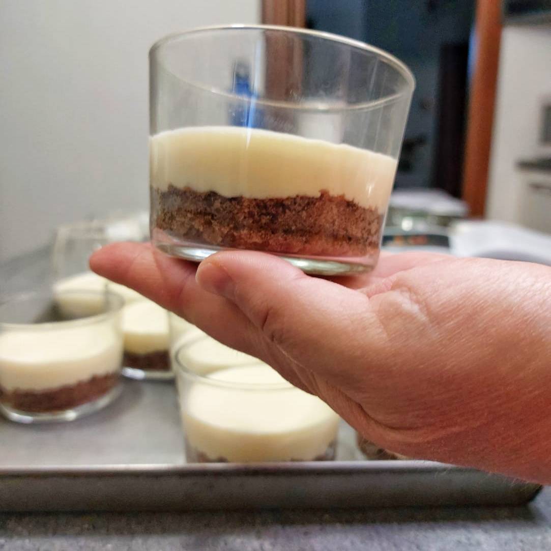 Inserire nei bicchierini un disco di cake e versare uno strato di un cm di mousse al mascarpone, congelare per almeno mezz’ora.