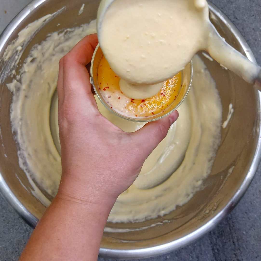 Una volta che il geleè è congelato versare nei bicchierini una altro strato di un cm di mousse al mascarpone.